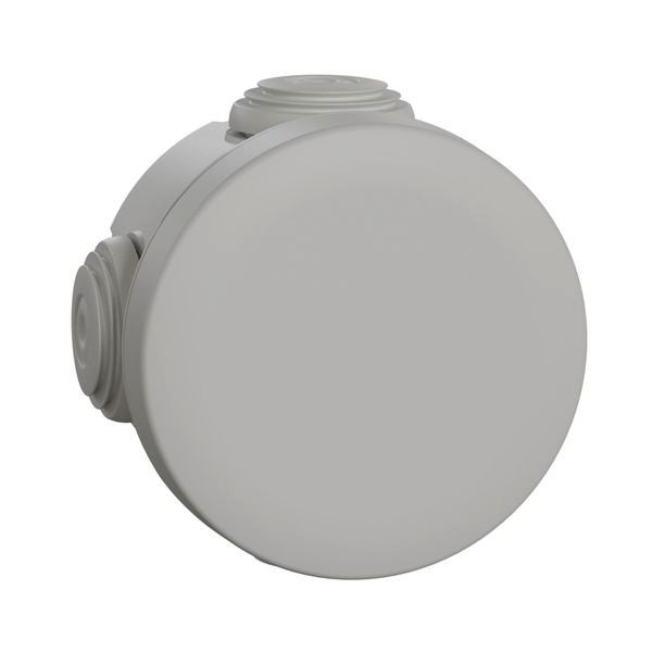 Mureva Abzweigdosen. Mureva BOX, runde Abzweigdose, 4 Tüllen DM 20, 60x60x40 mm. VPE 5. Kunststoff-Abzweigdose für Feuchtraumanwendungen. Schutzart IP 55, Farbe Grau RAL7035. Unverlierbarer Deckel durch Halteband, schnelle Kabeleinführung durch abgestufte Membran. Montage mit 1-Punkt-Befestigungsdübel, Standarddübel oder Bolzenschubgerät möglich. Deckelbefestigung Clip.