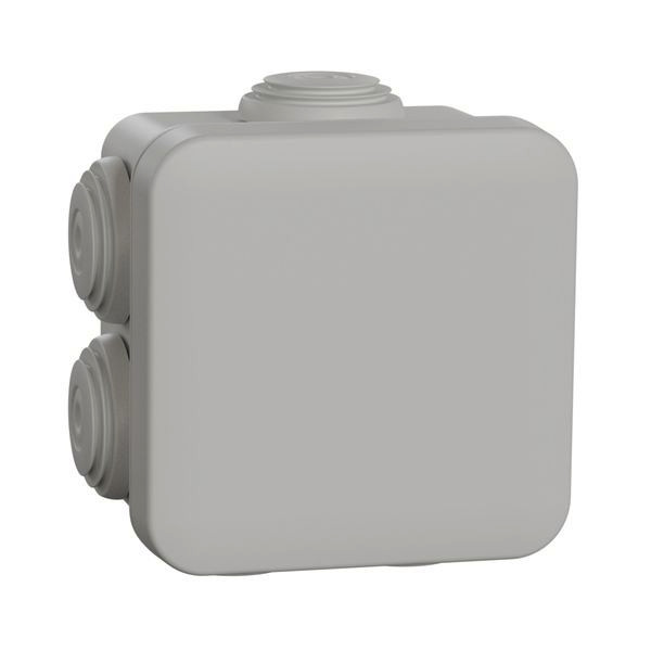 Mureva BOX, Abzweigdose, 7 Tüllen Durchmesser 20mm, 65x65x45mm. Mureva Abzweigdosen: Kunststoff-Abzweigdose für Feuchtraumanwendungen, Schutzart IP 55, Farbe: Grau RAL7035, unverlierbarer Deckel durch Halteband. schnelle Kabeleinführung durch abgestufte Membran, Montage mit 1-Punkt-Befestigungsdübel, Standarddübel oder Bolzenschubgerät möglich, Deckelbefestigung: Clip.