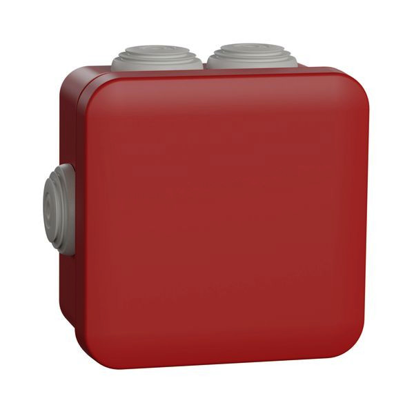 Mureva BOX, Sicherheitsabzweigdose, 7 Tüllen Durchm 20, 80x80x45mm. Farbe Rot. Mureva Abzweigdosen: Kunststoff-Abzweigdose für Feuchtraumanwendungen, Schutzart IP 55, Farbe: Grau RAL7035, unverlierbarer Deckel durch Halteband. schnelle Kabeleinführung durch abgestufte Membran, Montage mit 1-Punkt-Befestigungsdübel, Standarddübel oder Bolzenschubgerät möglich, Deckelbefestigung: Clip.