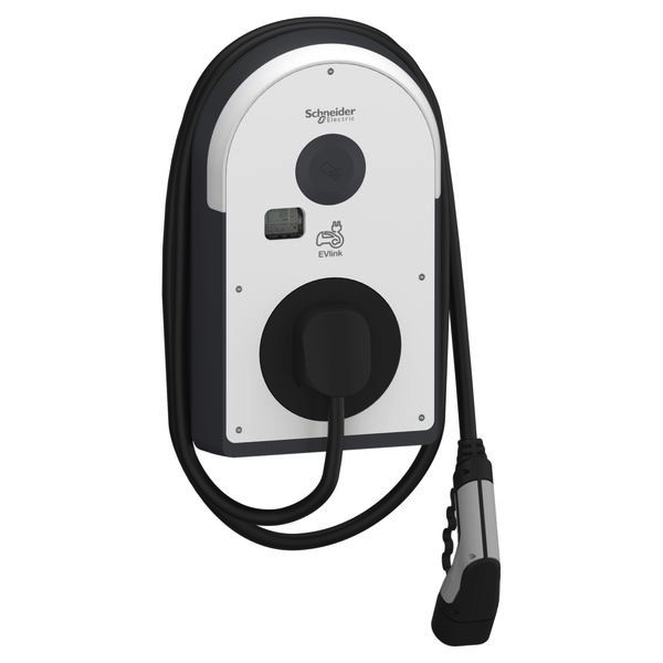 EVlink Pro AC Wallbox in eichrechtskonformer Ausführung mit Typ 2 Ladekabel 5m mit Shuttern. Für den Einsatz in öffentlichen Garagen oder auf Parkplätzen, für die Innen- oder Außeninstallation an der Wand, auf der EVlink Stele (EVA1PBS1 / EVA1PBS2) oder im Metal Kit (EVA1RWKS1 / EVA1RFKS1 / EVA1RFKS2). Mode 3 Ladung gemäß IEC 61851-1, 3-phasig mit maximal 22 kW Ladeleistung, Typ 2 Ladekabel mit 5m Länge. mit integriertem eichrechtskonformen Zähler, 6mA Gleichfehlerstromerkennung (ermöglicht den Einsatz eines FI Typ A). Digitaleingänge: 1 für vorübergehende Strombegrenzung, 1 für verschobene/ausgesetzte Ladung, 1 für EV-Anwesenheitserkennung. Zugriffskontroller über NFC / RFID Reader. NFC Reader 13,56 MHz kompatibel mit Typ 1, 2, 4 und 5 Badges, RFID Reader: Entspricht den Protokollen ISO/CEI 14443 A & B und ISO/CEI 15693, Kompatibel mit Mifare Ultralight, Mifare Classic, Mifare Plus. Nutzerinformationen und Statusmeldung über einen gut sichtbaren LED-Bogen, inbetriebnahme der Wallbox über eSetup App via Bluetooth. Kommunikationsstandards: Bluetooth, Ethernet 2 Anschlüsse (1 für Daisy Chain), Modbus serial, Modbus TCP, OCPP 1.6J zur Anbindung an ein Backend sowie dem Lastmanagementsystem EcoStruxure EV Charging Expert. optionales Zubehör: Wifi Modul (EVA1MW), Modem Modul (EVA1MS & EVA1MM), ISO 15118 Modul (EVA1M8), steckbar auf den Ladecontroller. Farbe der Ladestation: Korpus: Dunkelgrau RAL 7016 und Schwarz RAL 9005, Frontabdeckung: Weiß RAL 9003. Abmessungen BxHxT: 317x529x153mm, Gewicht: 7,5 kg, Material: Polycarbonat UV-behandelt. Stoßfestigkeit IK10, Schutzgrad IP55, Betriebstemperatur -25 bis 40°C, Lagertemperatur -40 bis 80°C, Betriebshöhe max. 2000m ohne Derating, rel. Luftfeuchte 5 bis 95%, Eigenverbrauch <10W. Erdungssystem: TT, TN(S) oder TN(C)(S), IT kompatibel mit zusätzlichem Trenntransformator in der Spannungsversorgung. Normen und Standards: CE, E.V. Ready, IEC/EN 61851-1 Ed 3.0, IEC/EN 62196-1 Ed 2.0, IEC/EN 62196-2 Ed 1.0, EN 61000-6-2: 2019, EN 61000-6-3:2007 + A1:2011, IEC 60884-1 und NF-C 61314.