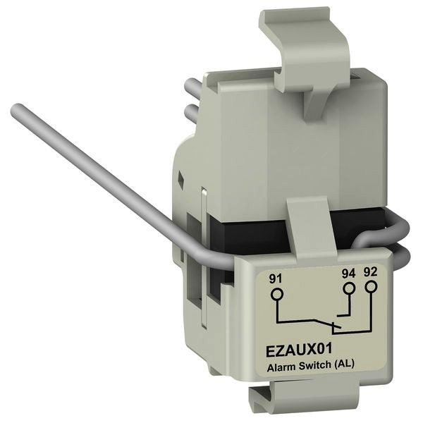 Dies ist ein Alarmschalter (AL) als Teil des Meldekontakts für den Leistungsschalter EasyPact EZC100. Die AL zeigt an, dass der Leistungsschalter aufgrund von Überlast, Kurzschluss oder Auslösung des Spannungsauslösers ausgelöst hat. Er kann in den stromlosen Zustand zurückversetzt werden, wenn der Leistungsschalter zurückgesetzt wird. Diese elektrischen Hilfsgeräte werden beim Öffnen der Frontabdeckung an einer Stelle eingerastet.