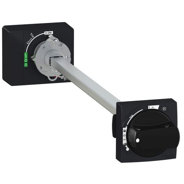 Frontseitig verlängertesDrehantriebsset. Hilfsschalter Schwarzer Griff, Schutzart IP54.