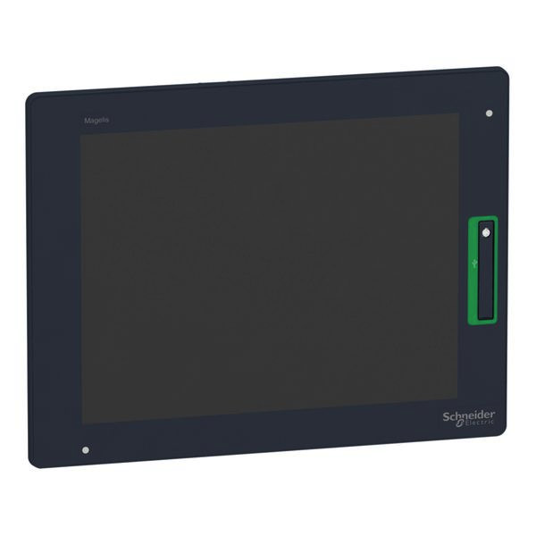 Magelis Touchpanel. Flachbildschirm als Einbaugerät, Vorderseite IP 65, mit 3 m langem Kabel. Industrielles Touchscreen-Display, 12 Zoll XGA (1.024 x 768). Betriebsspannung 24V. Flachbildschirme Magelis iDisplay sind industrietaugliche Displays, die in Verbindung mit PCs eingesetzt werden. Die Displays erfüllen die Anforderungen der einschlägigen Automatisierungsstandards und sind für schwierige industrielle Umgebungen konzipiert. Trotz geringer Gesamtabmessungen bieten die Displays eine große Anzeigefläche. Die Magelis iDisplay-Flachbildschirme können mittels der Befestigungselemente (3 x 4 Federbügel), die im Lieferumfang der einzelnen Bildschirme enthalten sind, auf einem Panel oder einer Gehäusetür montiert werden.