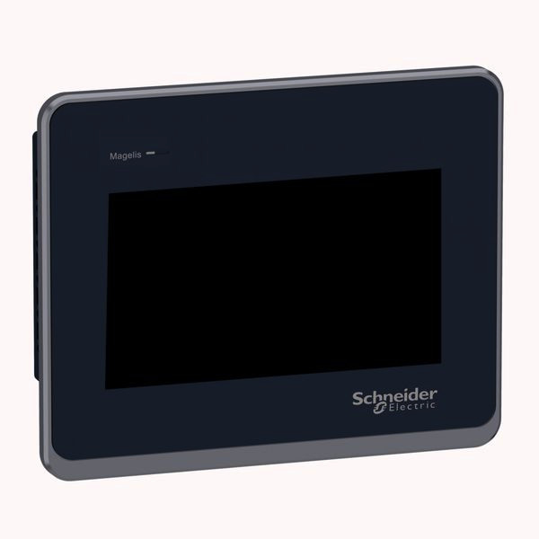 Das Basic HMI ST6 ist ein Standard Touch-Panel aus der Schneider Electric Harmony ST6-Reihe. Diese Produkt-Reihe wurde entwickelt, um die Anforderungen an die Bedienerschnittstelle einfacher Maschinen zu erfüllen. Hierbei stehen Konnektivität, Cybersicherheit für den Fernzugriff mit EcoStruxure Secure Connect Advisor und eine moderne und intuitive Visualisierung im Mittelpunkt. Das resistive Single-Touch Display in 4,3 Zoll wide screen mit 16 Mio Farben und einer Auflösung von 480x272 Pixel dient der Visualisierung, Bedienung und Statusanzeige ihrer Anwendungen. Die Bedienoberfläche auf dem HMI wird mit der Software EcoStruxure Operator Terminal Expert konfiguriert. Durch die vielfältigen Schnittstellen (1 x Ethernet, 1 x serielle COM, 1 x USB Typ A, 1 x USB micro-B) ist eine optimale Konnektivität gewährleistet. Die äußeren Abmessungen des Displays betragen 134,5 mm (Breite) x 108,5 mm (Höhe) x 43 mm (Tiefe) bei einem Panel Cut-out von 118,5 mm x 92,5 mm und einer Tafeldicke von 1,6 bis 5 mm, mit Federklemmen 1,5 bis 4 mm oder 4 bis 6mm. Das Produkt entspricht der Schutzklasse IP65F, Typ 1, Typ 4X (nur für den Innenbereich), Typ 12 und Typ 13 (bei ordnungsgemäßer Installation in einem Gehäuse). Zudem entspricht es Normen wie CE, China RoHS, REACH,KC, EN (61000-6-4/61000-6-2/ 61131-2), UL 61010-2-201, CSA C22.2 No 61010-2-201.