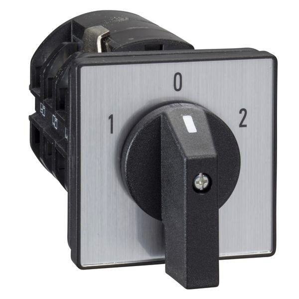 Wendeschalter 63A 3 polig. Produktbereich: Harmony K. Komponentenname: K63. knv. off. therm. Strom Ith: 63 A. Produktmontage: Frontmontage. Verriegelung des Drehgriffs: ohne. Funktion des Nockenschalters: Umkehrschalter. Rückgabe: ohne. Beschreibung der Pole: 3P. Schaltpositionen: links: 0°. 300°, rechts: 0°. 60°. IP-Schutzgrad: IP40 gemäß IEC 529, IP40 gemäß NF C 20-010.