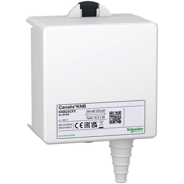 Canalis KNA, Abgangskasten, 25A, Sicherungsunterteil für Sicherung 10x38, Polarität 3L + N + PE, Sicherungen nicht enthalten.