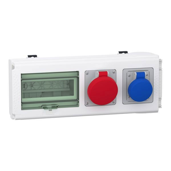 Canalis KNA, Abgangsadapter, 32A, Leergehäuse 8 Teilungeinheiten, Polarität 3L + N + PE, 1 CEE Steckdose 3 p 16A, 1 CEE Steckdose 5 p 16A.