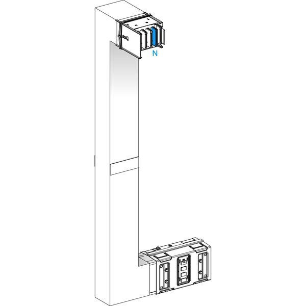 Canalis KSA. Richtungsänderung. 1000A. Mehrfachrichtungsänderung. hochkant-flach. PE innen, horizontal links. Schenkel A fix, B variabel. Schenkel C fix. Brandschott S120 in B. C-Profil. Polarität 3L + N + PE.