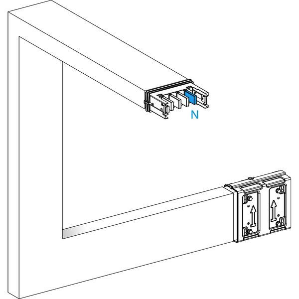 Canalis KSA. Richtungsänderung. 400A. Mehrfachrichtungsänderung. hochkant-flach. PE innen, horizontal links. Schenkel A, B & C variabel. C-Profil. Polarität 3L + N + PE.