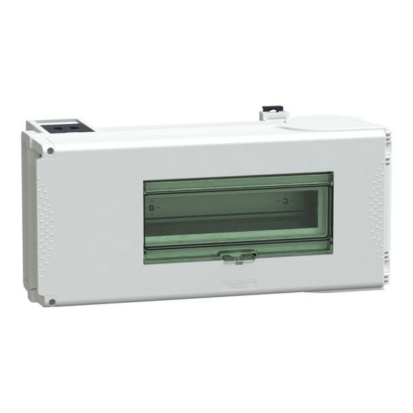 Canalis-Abgriffeinheit für KT und KS. Er wird für die mittlere Energieverteilung und das TN-C-Erdungssystem eingesetzt. Die Betriebsspannung reicht von 230VAC 50/60Hz bis 690VAC 50/60Hz. Der Bemessungsbetriebsstrom beträgt 100 A. Montage durch Plug-in mit fester Polarität mit weißer RAL 9001 Oberflächenbehandlung und deren Sammelschienenpolarität 3L+PEN ist. Es bietet Schutz für Leitungsschutzschalter (MCB) (Leitungsschutzschalter muss separat bestellt werden). Das Gerät kann durch Öffnen der Tür nach rechts abgeschaltet werden. Canalis KS-Stromschienenverteiler sind mit Steckdosen kompatibel, Canalis KT-Stromschienenverteiler sind mit Steckdosen vom Typ KS kompatibel. Er bietet einen IP55-Schutz, der der Norm IEC 60529 entspricht. IK08 ist konform mit IEC 62262. Es ist sowohl mit IEC 61439-1 als auch mit IEC 61439-6 konform. Er ist auch konform mit Green Premium (RoHS/REACH).