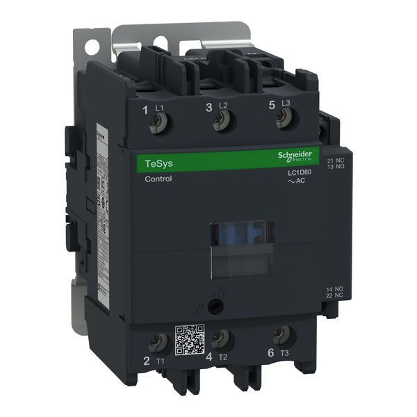 (von 18,5 bis 30 kW Hauptstrom mit EverLink-Klemmen). Leistungsschütz TeSys LC1D. 3 polig, 3 Schließer. Zusätzliche Hilfskontakte- 1 Schließer + 1 Öffner, Bemessungsbetriebsleistung bei AC-3, 400 V 37 kW, Bemessungsbetriebsstrom Ie bei AC-3, 400 V 80 A, Spule 230 V AC. Abmessung (BxHxT) 85x127x130 mm, Gewicht 1,59 kg. Kategorie AC-4, AC-3, AC-1. ohne integriertes Beschaltungsmodul. Schnelle und einfache Einrichtung. Sichere und langlebige Stromverbindung mit Everlink und Federklemmen. Geeignet für Sicherheitsanwendungen durch mechanisch gekoppelte Kontakte und Spiegelkontakte. Zertifizierungen nach DNV, LROS (Lloyds register of shipping), GOST, CCC, GL, RINA, BV, CSA, UL. Produktstandards gem.