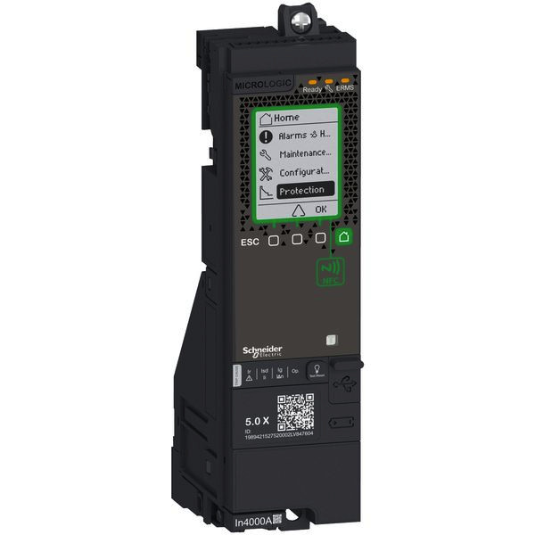 Schutz- und Auslösegerät MicroLogic 5.0 X für Leistungsschalter MasterPact MTZ2 und MTZ3 in Einschubtechnik ohne Bluetooth-Kommunikation. Schutzfunktionen LSI, Überstrom-, verzögerter Kurzschluss-, unverzögerter Kurzschlussschutz. Erweiterte Schutz-, Mess-und Wartungsfunktionen skalierbar über digitale Module. Konfiguration, Prüfung und Inbetriebnahme mittels Software EcoStruxure Power Commission (EPC).