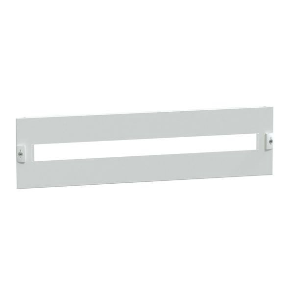 PrismaSeT P. Frontplatte, 1-reihig mit 45 mm Ausschnitt für modulare Reiheneinbaugeräte, mit einer Höhe von 4 Moduleinheiten für Schaltschränke mit einer Breite von 800 mm. Pulverbeschichtet in RAL9003 struktur.