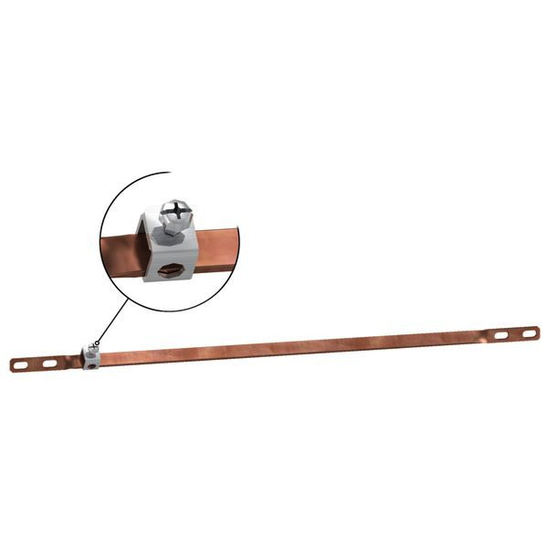 PrismaSeT P. Linergy TB Erdungsschiene aus Kupfer mit einer Schienengröße von 12 x 3 mm, mit 1 Einspeiseklemme für Kabel 16 bis 35 mm² mit einer Länge von 450 mm.