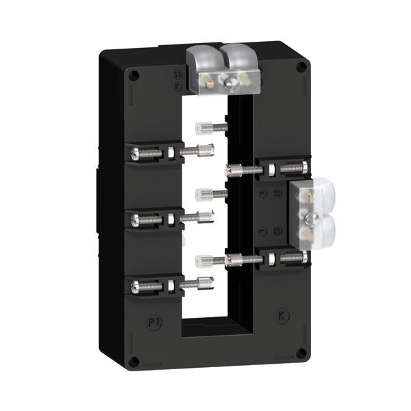 PowerLogic. Stromwandler TI, Typ DB - für vertikales oder horizontales Schienenprofil bis 38 x 127 mm. Wandler TI 3000_5. Grösse_Ipn_5A 3000, Leistung VA GKl 0.5 25, Leistung VA GKl 1 30. Abmessungen (BxHxT) 99 x 160 x 87 mm.