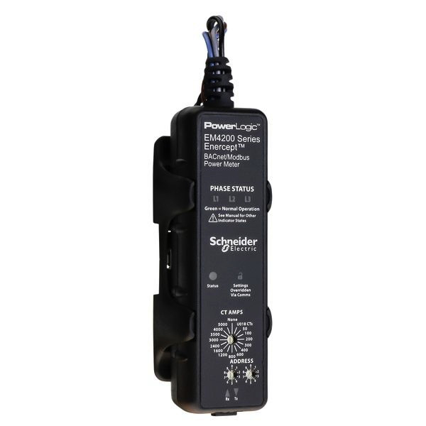 PowerLogic EM4200. Universal-Messgeräte Serie EM4200 für Wandlermessung über Low Voltage Current Transformer (LVCT) bis 2400 A und Rogowski-Flexwandler bis 5000 A für Messungen in Niederspannungsanwendungen bis 480 V AC. Einfache Inbetriebnahme ohne Software Konfiguration der Wandlerfaktoren und Kommunikation über Drehkodierschalter. EM4235 Enercept, Energiezähler Klasse 0.2S, Modbus/BACnet-Komm. RS-485, IEC Drahtkodierung.