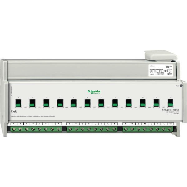 | Kurzbeschreibung | Schaltaktor REG-K/12x230/16 mit Handbetätigung und Stromerkennung, lichtgrau |
