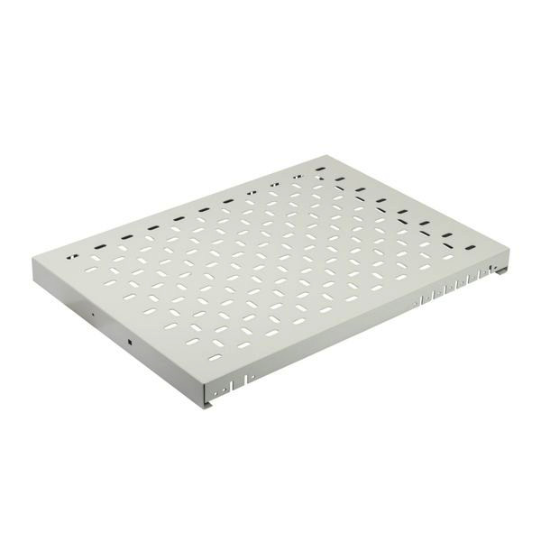 Festrahmen 19 Zoll, werkzeuglos zwischen den vorderen und hinteren 19-Zoll-Stehern befestigt. Stahlblech, RAL 7035 grau lackiert, 100 kg zulässige Belastung. Geeignet für 1000 mm Rack-Tiefe, der Abstand zwischen den einzelnen Befestigungspunkten beträgt 658 mm, einstellbar in 25-mm-Schritten. Diese Ablage ist gelocht. Produktfamilie Actassi.