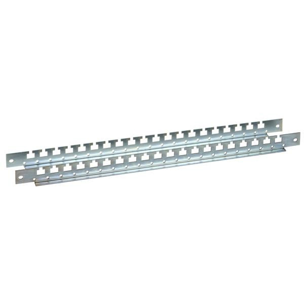PanelSeT SF/SM Kabelabfangschiene, Stützwinkel 90°. 600 x 600 mm. Verkabelungszubehör. Ermöglicht die schnelle und einfache Befestigung von ein- und ausgehenden Kabeln. Für die Direktmontage am Gehäuse. Raster für Tiefenverstellung 25mm. Stahl, verzinkt. 2 Schienen und Befestigungselemente inkl.