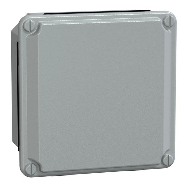 Industrieller Metallkasten - niedriger, glatter Deckel - H105xB105xT49 - IP55 - grau RAL 7035.