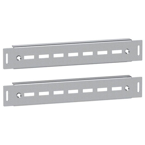 PanelSeT SF Schwerlastschienen. Tiefenverstellbar im Raster von 25 mm. Befestigung mit Schraube M6. Halterung für die Montage am unteren Rahmen. Max. Tragfähigkeit 475 kg. Verzinktes Stahlblech, 3 mm stark. 2 Schienen.
