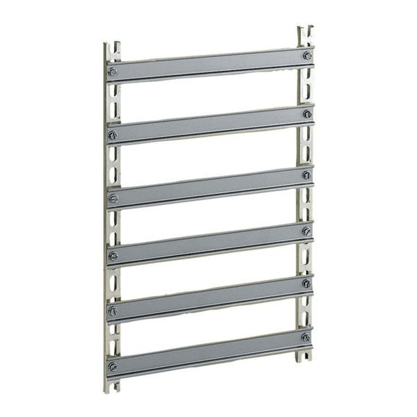 Symmetrische Montagerahmen für Gehäuse (S3D, S3X, PLM, CRN). (4 Schienen) 400 x 300 mm. Vertikale Aluminiumschienen und 4 Kreuzschienen (symmetrisch DIN). 2 Stützen. Stahl für Schiene, Aluminium für Stützen.