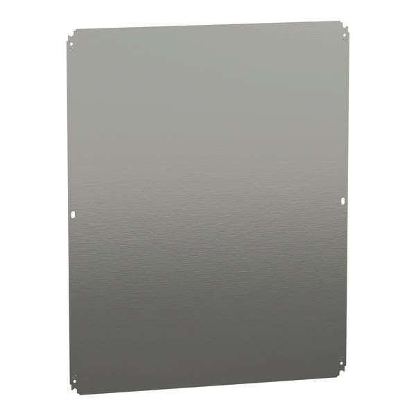 Glatte Montageplatte für PanelSeT CRN, S3D, S3X, PLM. Für Gehäuse H1000 x B800 mm. Universelles Montagezubehör. Montageort des Stufenschlittens oder direkte Befestigung an den Hinterlegern (Schrauben M8). 150 kg zulässige Last. Verzinkter Stahl. Satz von 1. umkehrbaren Abmessungen Kann in ein Gehäuse mit umgekehrten Abmessungen eingebaut werden.