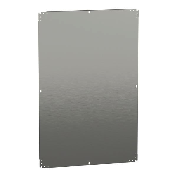 Glatte Montageplatte für PanelSeT CRN, S3D, S3X, PLM. Für Gehäuse H1200 x B800 mm. Universelles Montagezubehör. Montageort des Stufenschlittens oder direkte Befestigung an den Hinterlegern (Schrauben M8). 180 kg zulässige Last. Verzinkter Stahl. Satz von 1. umkehrbaren Abmessungen Kann in ein Gehäuse mit umgekehrten Abmessungen eingebaut werden.