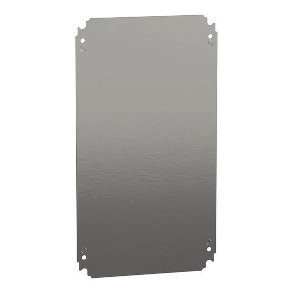 Glatte Montageplatte für PanelSeT CRN, S3D, S3X, PLM. Für Gehäuse H500 x B300 mm. Universelles Montagezubehör. Montageort des Stufenschlittens oder direkte Befestigung an den Hinterlegern (Schrauben M8). 60 kg zulässige Last. Verzinkter Stahl. Satz von 1.