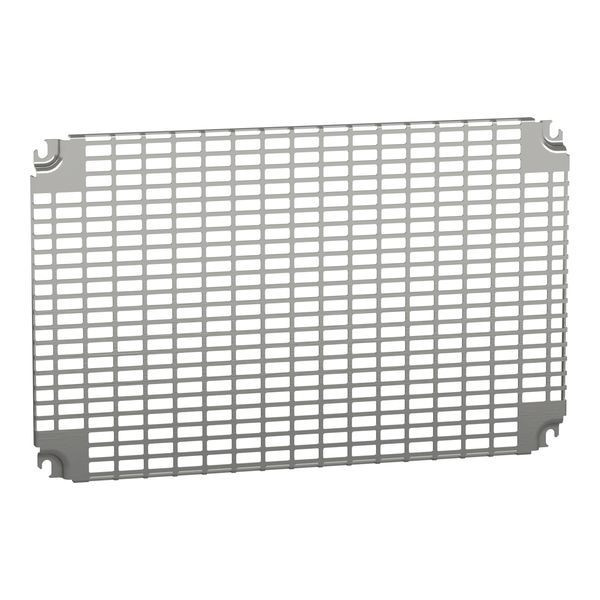 Monoblock-Lochbleche mit Universallochung für CRN, S3D, PLM. Für Gehäuse H400 x B600 mm. Vielseitiges Zubehör. Stufenschlitten oder direkte Befestigung an der Befestigung der hinteren Bolzen (Schrauben M8). Telquick perforiert. Ausschnittabmessungen 11x26mm. Aus Stahl, verzinkte Oberfläche. 450 Slots. Besonderheit der Variante Installation in der Rückseite des Gehäuses.
