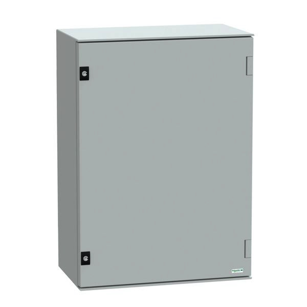 | Kurzbeschreibung | PanelSeT PLM Polyestergehäuse - Wandmontage, einfache Tür, ohne MP H747xB536xT300mm IP66, IK10, RAL 7035 |