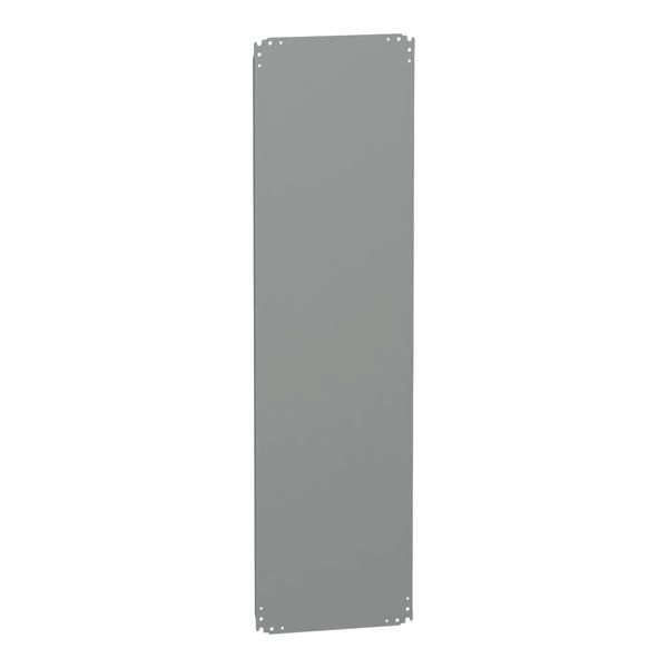 PanelSeT PLA Metall-Montageplatte. Für Gehäuse H1500 x B500 mm. Die Montageposition der Stufenschlitten oder die Position der hinteren Einsätze (Befestigung mit Schrauben Typ M8). Glatte Montageplatte. 150 Kg permanente zulässige Last. Verzinkter Stahl. Grau RAL 7035.