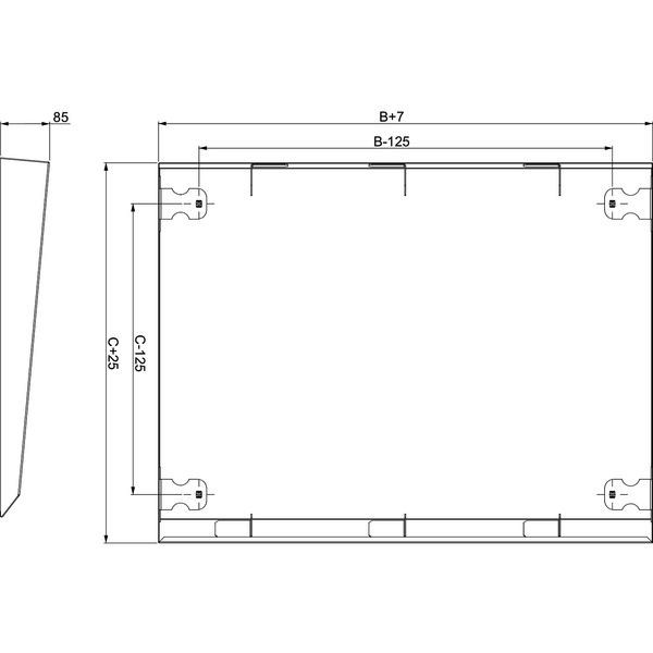 PanelSeT SF / SM Regendach. Für Gehäuse B 1200 x T 400mm. Zubehör für Universalgehäuse zur Montage auf der Oberseite des Gehäuses. Die Befestigung erfordert Bohrungen im Schaltschrankdach. Verzinkter Stahl. Epoxid-Polyesterpulverbeschichtung, grau RAL 7035. Kann auf gekoppelten Gehäusen montiert werden.