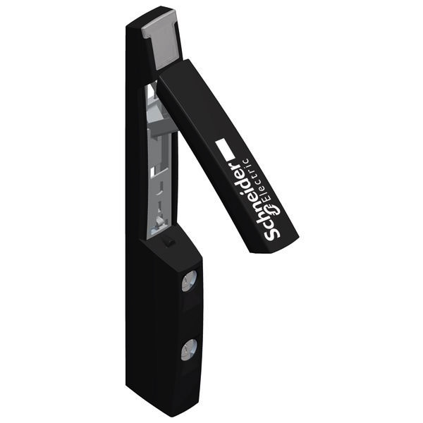 PanelSeT SF/SM-Doppelgriff. Universelles Verriegelungszubehör zur Montage an Schranktüren. Polyamid 6 mit 30 % Glasfasergriff, Etikettenrahmen aus Polycarbonat. 1 Doppelsteckgriff, Elemente für UND- und ODER-Funktionen und Befestigungselemente inkl.