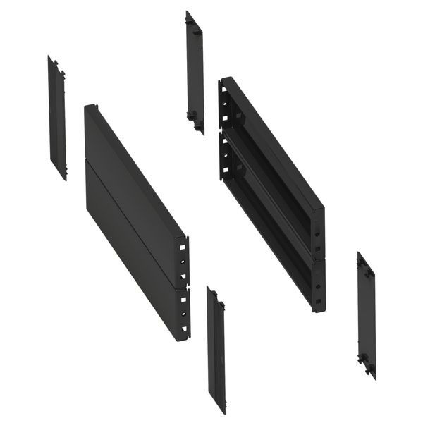 Sockelseitenteile für PanelSeT SF/SM. 200 x 400mm. 4 Seitenteile, 4 Eckabdeckungen, Befestigungselemente. Stahlblech. Grau RAL 7022, Epoxy-Polyesterpulver.