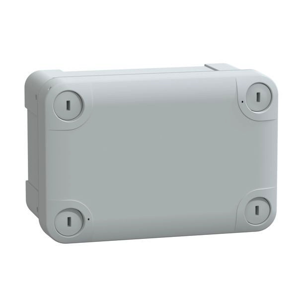 Dieses wandmontierte TBS-Gehäuse aus ABS ist für die Mehrzweckanwendungen geeignet. Das Gehäuse hat eine Höhe, Breite und Tiefe von 138 mm, 93 mm bzw. 72 mm. Die Innenmaße betragen 125 mm x 80 mm x 65 mm. Das Gehäuse besteht aus ABS (Acrylnitril-Butadien-Styrol), das stoßfest, korrosionsbeständig und resistent gegen niedrige und hohe Temperaturen ist. Es besteht zu 45 % aus postindustriellem Recycling-Kunststoff (ABS). Es ist in der Farbe Grau (RAL 7035) erhältlich. Die Abdeckung ist mit unverlierbaren Flachschrauben befestigt, die sich außerhalb des abgedichteten Bereichs befinden und mit einem flachen Schraubendreher leicht zu öffnen sind. Das Gehäuse kann für Abzweigungen, Rangierungen, den Schutz von elektronischen Schaltungen, die Unterstützung von Drucktasten, die industrielle Automatisierung und andere Anwendungen verwendet werden. Das Gehäuse hat eine elektrische Isolierung der Klasse II, die elektrische Schläge verhindert und den Bau von vollständig isolierten Lösungen ermöglicht. Außerdem ist es gemäß der Norm IEC 60695-2-11 feuerbeständig bis zu 650°C. Das Gehäuse bietet mit der Schutzart IP66 (NEMA 4,4X) hohen Schutz gegen Staub und Wasser und ist mit der Schutzart IK07 (IEC 62262) stoßfest. Es kann bei einer Umgebungstemperatur von -25 bis 60°C eingesetzt werden, ohne dass seine Leistung beeinträchtigt wird. Das Gehäuse ist TÜV-zertifiziert und hat eine elektrische Isolierung der Klasse II, die elektrische Schläge verhindert. Dieses Gehäuse wird in einem Satz von 2 Stück verkauft.
