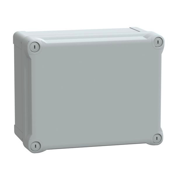 Dieses wandmontierte TBS-Gehäuse aus ABS ist für die Mehrzweckanwendungen geeignet. Das Gehäuse hat eine Höhe, Breite und Tiefe von 241 mm, 194 mm bzw. 127 mm. Die Innenmaße betragen 225 mm x 175 mm x 120 mm. Das Gehäuse besteht aus ABS (Acrylnitril-Butadien-Styrol), das stoßfest, korrosionsbeständig und resistent gegen niedrige und hohe Temperaturen ist. Es besteht zu 45 % aus postindustriellem Recycling-Kunststoff (ABS). Es ist in der Farbe Grau (RAL 7035) erhältlich. Die Abdeckung ist mit unverlierbaren Flachschrauben befestigt, die sich außerhalb des abgedichteten Bereichs befinden und mit einem flachen Schraubendreher leicht zu öffnen sind. Das Gehäuse kann für Abzweigungen, Rangierungen, den Schutz von elektronischen Schaltungen, die Unterstützung von Drucktasten, die industrielle Automatisierung und andere Anwendungen verwendet werden. Das Gehäuse hat eine elektrische Isolierung der Klasse II, die elektrische Schläge verhindert und den Bau von vollständig isolierten Lösungen ermöglicht. Außerdem ist es gemäß der Norm IEC 60695-2-11 feuerbeständig bis zu 650°C. Das Gehäuse bietet mit der Schutzart IP66 (NEMA 4,4X) hohen Schutz gegen Staub und Wasser und ist mit der Schutzart IK07 (IEC 62262) stoßfest. Es kann bei einer Umgebungstemperatur von -25 bis 60°C eingesetzt werden, ohne dass seine Leistung beeinträchtigt wird. Das Gehäuse ist TÜV-zertifiziert und hat eine elektrische Isolierung der Klasse II, die elektrische Schläge verhindert.