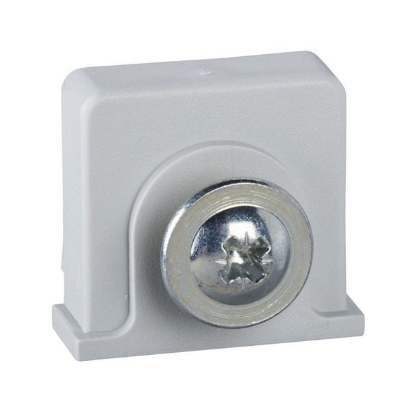 Kunststoffmutter und Blechschraube in den Aussparungen des PLM für DIN-Schiene.