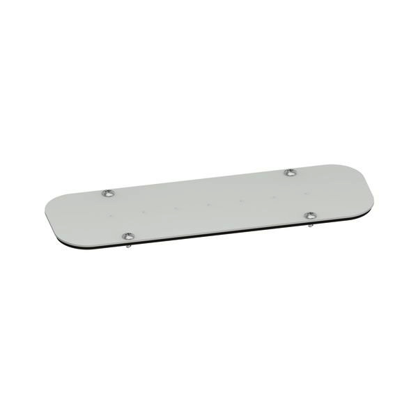 Standard-Kabelverschraubungsplatte für PanelSeT S3D. L245 x B80 mm. Zubehör für die Kabelführung. Flanschplatte wird an der Unterseite des Gehäuses montiert. Anzahl der Ausschnitte 7 Markierungen von 25 mm. Stahlplatte mit Polyethylen Dichtung. Grau RAL 7035. Befestigungselemente, 1 Platte, 1 separate Dichtung inkl.