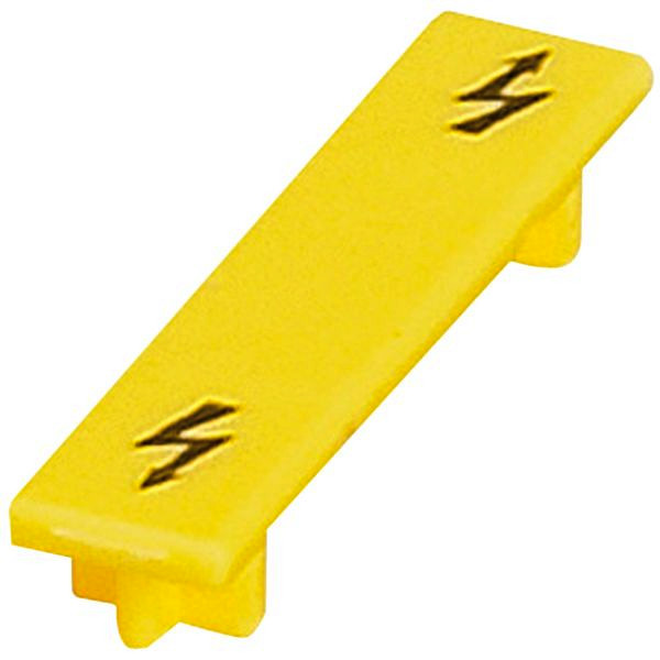 NSYTR Warnschild für Schraubklemmenleisten, 10 bis 50mm2, gelb.