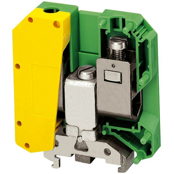 Schraubanschlusstechnik. Schutzleiter-Reihenklemmen. Schraub Reihenklemme, Schutzleiter, 2 Punkte, 50 mm². VPE 10.
