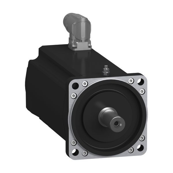 SH3-Servomotor für Lexium 52 & Lexium 62. Synchronmotor, niedriges Trägheitsmoment. Baugröße 100 mm - Nennleistung <=2210 W. Moment Dauerstillstand/Spitze 5,8/18,3 Nm. Drehzahl Nenn/Max <=4800/6000 U/min. Wellenende glatt in IP54 - Gehäuse IP65. Singelturn Encoder DSL, SinCos, 18x1024. keine Haltebremse und Wellendurchmesser von 19 mm. Anschluss mit 1 Kabel, 90° gewinkelt, drehbar. 2x M23.