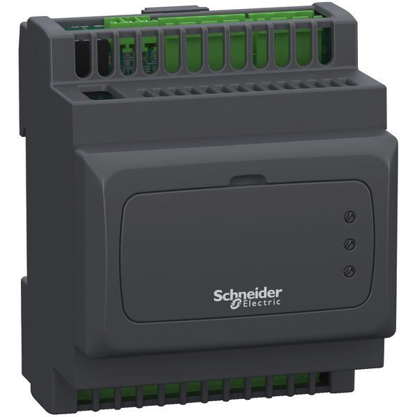 E/A-Erweiterungsmodul für Modicon M171/M172 SPS-Steuerungen. Das Modul verfügt über insgesamt 14 integrierte E/A, davon 4 digitale und 4 konfigurierbare (U/I/T/DE) analoge Eingänge, 4 digitale und 2 konfigurierbare (U/I) analoge Ausgänge. Die Spannungsversorgung erfolgt über 24 VAC / 24 VDC oder 48 VDC. Die digitalen Ausgänge sind als Relais (SPST, 3A / 230VAC / SPDT, 5A / 230 VAC) ausgeführt. Die Anschlüsse erfolgen mittels abnehmbaren Schraubklemmleisten (nicht im Lieferumfang enthalten). Montage auf 35mm Hutschiene. Zertifiziert nach CE, cURus (UL recognized), CSA, EAC.
