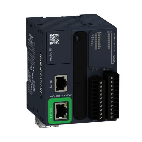 | Kurzbeschreibung | SPS-Steuerung, Modicon M221, Buchformat, 16 E/A, Ethernet, Modbus, 24 VDC, Relaisausgänge, Schraubklemmen |