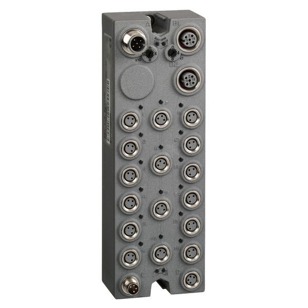 Modulares E/A-System, Schutzart IP67. Es ermöglicht durch den direkten Anschluss der Controller Modicon M258 und LMC058 (SPS und PAC) oder über den CANopen-Buseine flexible und skalierbare Konfiguration von Erweiterungen oder dezentraler E/A-Inseln. Das System zeichnet sich durch minimalen Verdrahtungs- und Wartungsaufwand aus und bietet eine Reihe von Modulen, die dem Anwender die Erstellung der von ihm gewünschten einfachen und kostengünstigen Konfiguration ermöglichen. 100% Flexibilität und Optimierung Ihrer Maschinen.