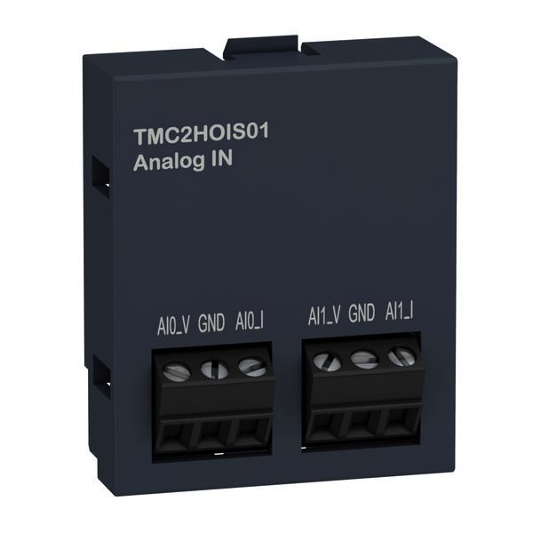 | Kurzbeschreibung | Steckmodul, Modicon M221, Applikation Hebetechnik, 2 Analogeingänge, Spannung/Strom, Auflösung 12 Bit, Schraubklemmen |