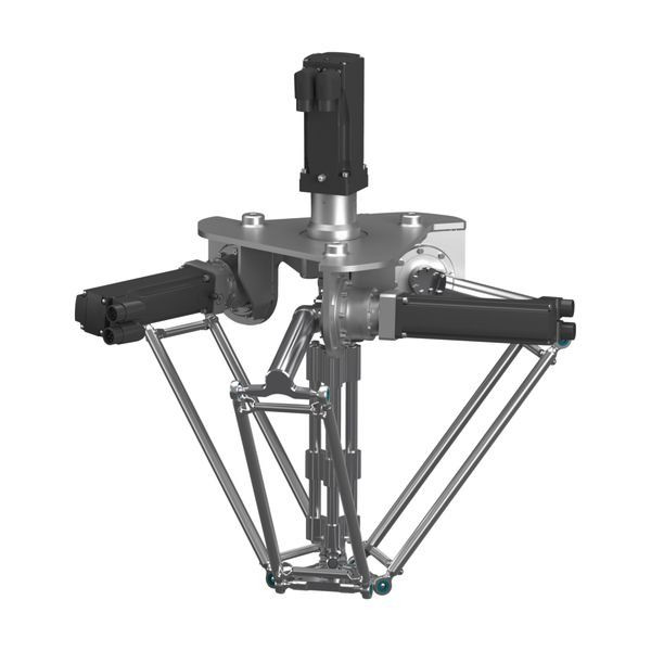 Lexium P - Roboter PacDrive Delta 3. Delta-Roboter für Pick & Place-Lösungen. Lexium P0 Roboter mit SH3 Motoren und rotationsachse installiert. Reichweite bis 400 mm und Traglast bis zu 10 kg. Normal, Kompakt Gehäuse.