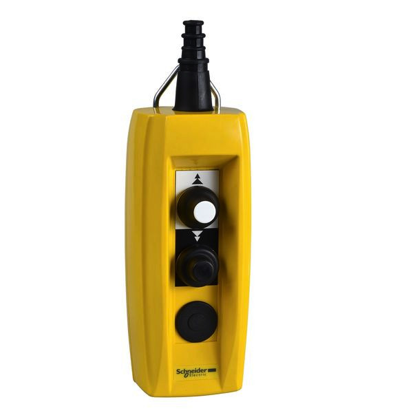 | Kurzbeschreibung | Hängetaster XAC-B, schutzisoliert- 2 Drucktaster+1 Not-Halt/Not-Aus-Taster |