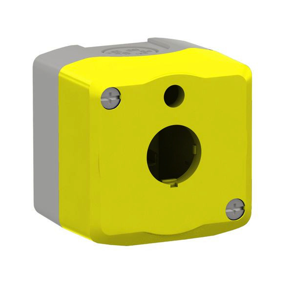 Die Aufbaugehäuse in Kunststoffausführung der Baureihe Harmony XALK stehen sowohl als Komplettgehäuse für den direkten Einsatz als auch als Leergehäuse zur individuellen Bestückung zur Verfügung. Die robusten Kunststoffgehäuse aus Polykarbonat eignen sich ideal für den universellen Einsatz in der Industrie und im Maschinenbau. Dieses Leergehäuse in hellgrau/gelb verfügt über 1 Bohrung mit 22mm und kann beliebig bestückt werden mit Drucktastern, Leuchtmeldern und Wahlschaltern der Baureihe Harmony XB5. Auch bei den Hilfsschaltern ist man in der Lage flexibel zwischen Front- und Bodenmontage zu wählen.