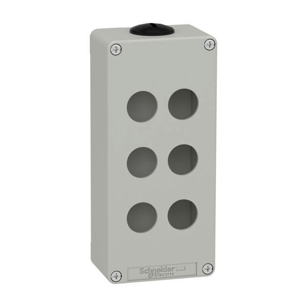 Leergehäuse der Baureihe Harmony XAP. Aus Metall mit Zinklegierung. Farbe: grau, mit einer Bohrung von 6x 22mm. Größe des Gehäuses: 80x175x51,5. Mit einer M25 Kabeldurchführung. IP-Schutzklassen bis IP69K und Umgebungstemperaturen von -25°C bis +70°C. Die modularen Harmony Drucktaster Baureihen mit 22mm oder 30mm Einbaumaß kombinieren einfache Installation, Effizienz, modernes Design, Flexibilität mit höchster Robustheit. Produktstandards gem. EN/IEC 60947-5-1, EN/IEC 60947-5-4, CSA C22.2 No 14, UL 508, EN/IEC 60947-1, JIS C 4520. Zertifizierungen nach DNV, GL, UL gelistet, RINA, BV, CSA, LROS (Lloyds register of shipping). Produktstandards gem. EN/IEC 60947-5-1, EN/IEC 60947-5-4, CSA C22.2 No 14, UL 508, EN/IEC 60947-1, JIS C 4520.